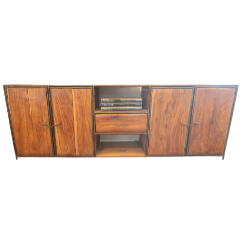 Ce dressoir en bois et fer est une vĂ©ritable Ćuvre dâart alliant authenticitĂ©, qualitĂ© et savoir-faire artisanal. Le mariage du bois naturel et du fer forgĂ© donne Ă ce dressoir un style Ă la fois industriel et rustique, idĂ©al pour ceux qui recherchent une touche de charme brut dans leur intĂ©rieur. Ce dressoir nâest pas seulement un objet dĂ©coratif, mais aussi un meuble fonctionnel.