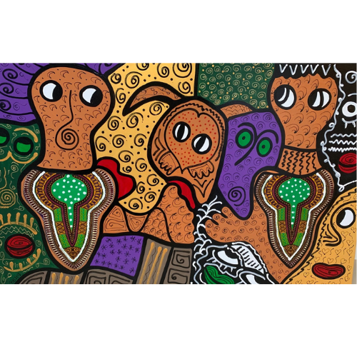 « Un dimanche en famille » est une Ćuvre captivante, qui capture l’intimitĂ© et la chaleur d’un moment familial. Ă travers des couleurs vives et des formes expressives, Koumy reprĂ©sente une scĂšne de convivialitĂ© et d’amour partagĂ© entre les membres d’une famille. Chaque personnage, dans sa posture et son regard, semble incarner l’harmonie et la complicitĂ© qui rĂšgnent lors de ces moments prĂ©cieux. L’artiste parvient Ă retranscrire la simplicitĂ© et la beautĂ© d’un dimanche en famille, oĂč les liens se renforcent et les souvenirs se crĂ©ent. La composition, tout en fluiditĂ©, invite Ă la contemplation de l’importance de la famille dans la culture et les valeurs humaines.